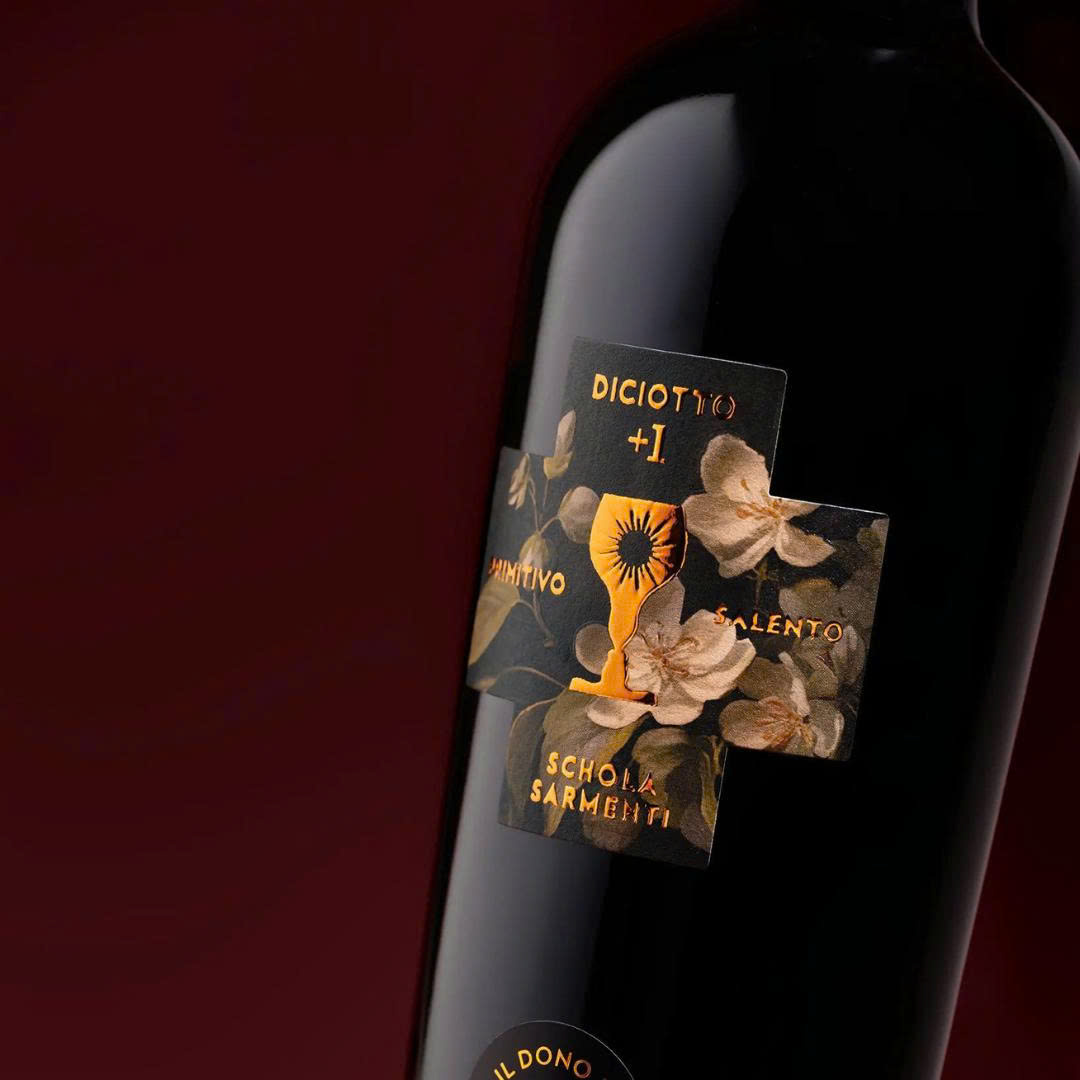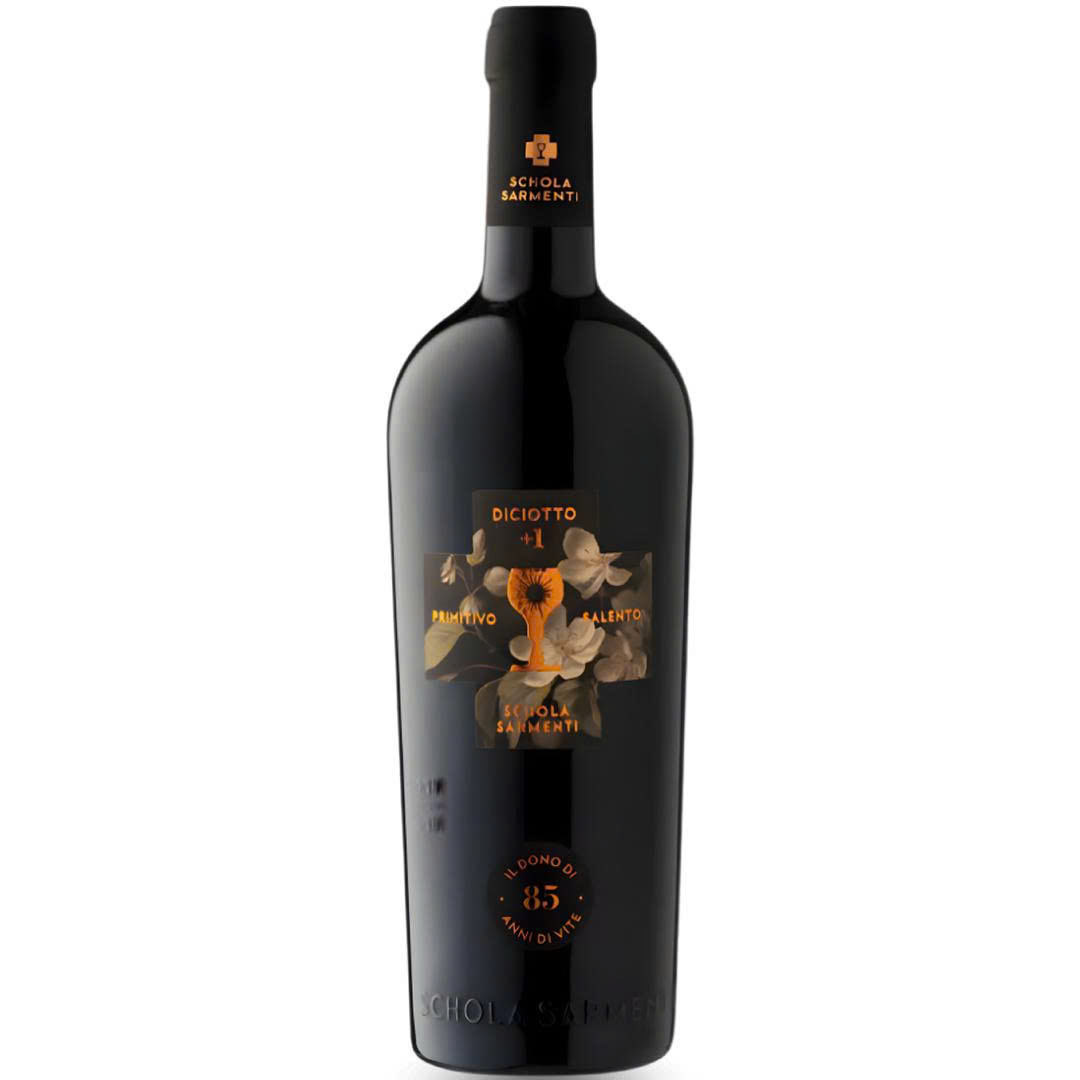 Rượu vang Chén Thánh Schola Sarmenti Diciotto +1 là một trong những chai vang đỏ Ý cao cấp hiếm hoi đạt nồng độ 19%, được làm từ 100% nho Primitivo cổ thụ hơn 85 năm tuổi tại vùng Salento, Puglia.