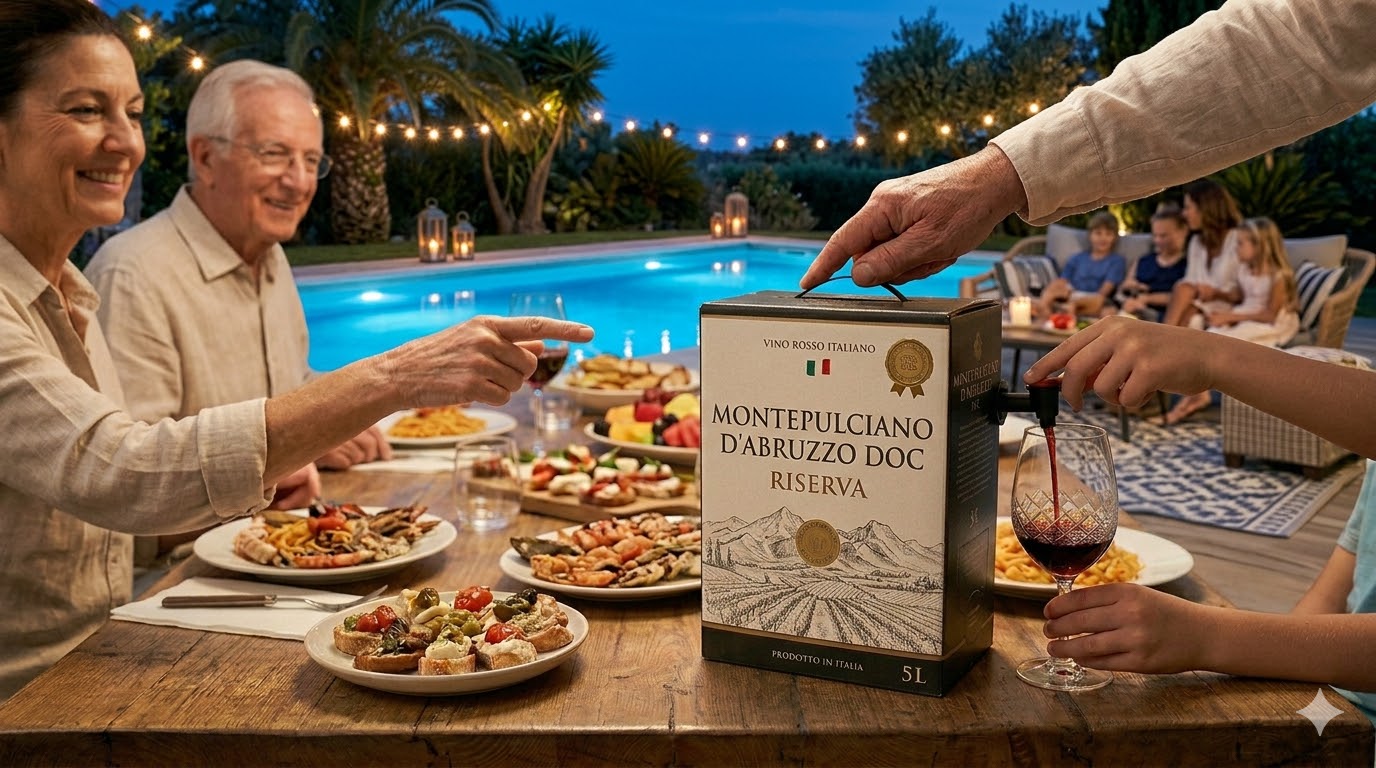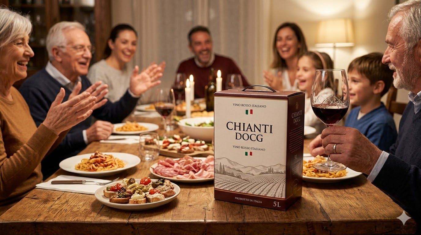 Cho tiệc gia đình, họp mặt bạn bè: Vang bịch Ý 3 lít dòng Primitivo hoặc Montepulciano – dễ uống, hợp đa dạng khẩu vị, rót được khoảng 20 ly.